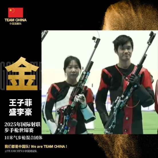 北京时间11月9日,2025年步手枪射击世锦赛在埃及开罗继续进行,在10米气步枪混合团体项目比拼中,两对中国组合王子菲/盛李豪、彭鑫露/王竑昊联袂出战并包揽金银牌。