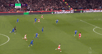 第71分钟,扎卡直塞前场左侧,特罗萨德倒三角送助攻,厄德高跟上推射破门!阿森纳3-0埃弗顿。