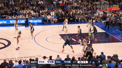 不仅是对杜兰特,独行侠对布克也是数次包夹,太阳在最后五分钟用韦恩莱特与布克打挡拆,韦恩莱特掩护后拆出来,就看独行侠是让布克点名东契奇,还是夹布克,独行侠还是不太敢在这个时间段让东契奇去单防布克,但包夹的后果就是韦恩莱特的又一记三分。