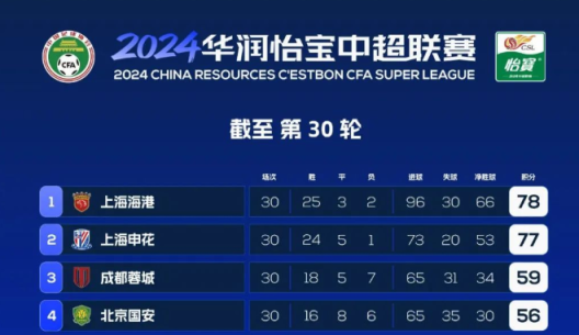 10月31日,在中超联赛第29轮比赛第三场关乎冠军归属的比赛中,上海申花队1比0击败深圳新鹏程队。这样,在联赛仅剩一轮的情况下,排在首位的上海海港队和排在第二的申花队之间的分差仅为2分。而这也就意味着本赛季中超冠军的归属要等到最后一轮才能揭晓,而且这个冠军之争和上赛季如出一辙,又是上海德比。