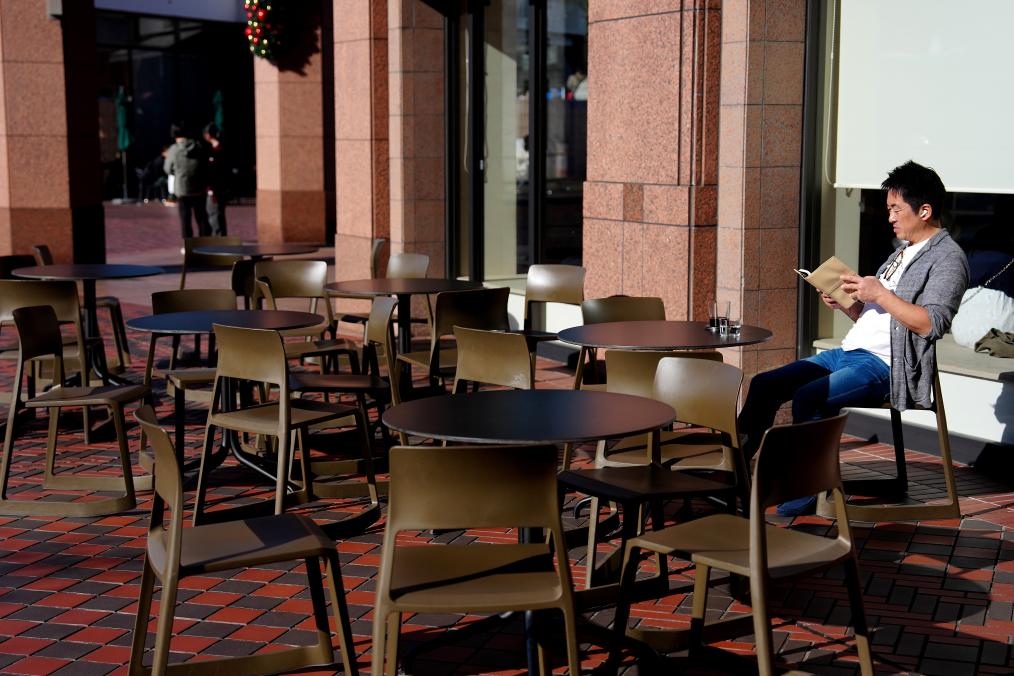 2025年11月17日,一名男子在日本东京的一家咖啡店外休憩。新华社记者 贾浩成 摄
