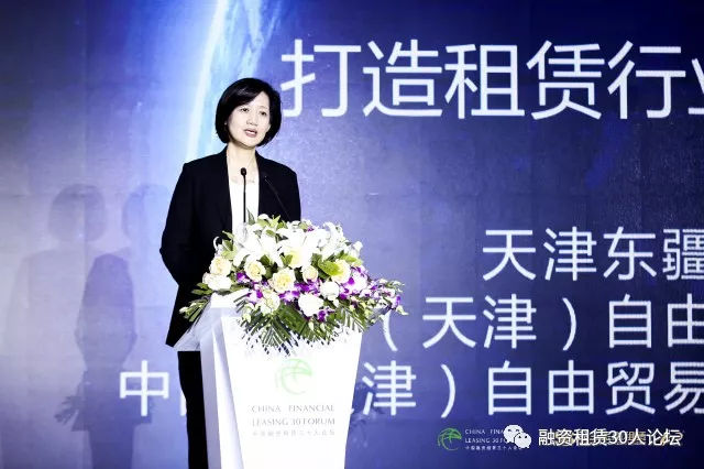 天津东疆保税港区管理委员会主任沈蕾做“打造租赁行业高地 助力实体经济转型升级”主旨演讲