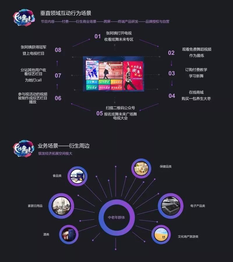央视网目前在互联网产品创新孵化中心之下,成立“传媒+工作室”、“互动娱乐工作室”两个工作室,已经引入了行业领军人才,采用特殊的管理和激励机制,进行“媒体+产业”的垂直化开发。央视网子公司未来电视CEO李鸣在媒体+电商分论坛上也介绍,未来电视作为智慧家庭的新入口,积极打造从大屏到小屏、从视频到电商、从线上到线下的“新零售”平台,并面向电商企业开放合作。今年3月,未来电视启动了“炫舞未来”广场舞电视大会项目,针对“有钱有闲”的4.4亿中老年群体,通过“广场舞+互联网电视电商”的创新模式瞄准了每年数百亿规模的巨大市场。