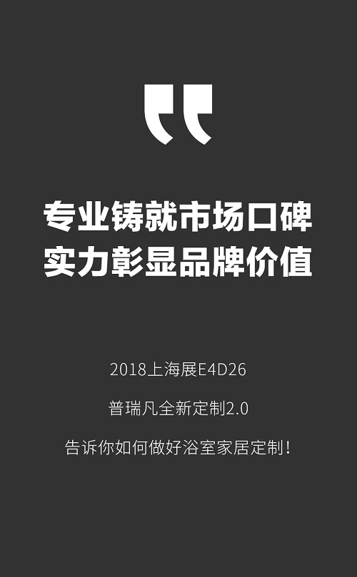 在全新定制2.0中,普瑞凡打破了风格界限,其产品不仅可以随意变化20余种不同风格,且这一数据仍在不断刷新中,即便市场风格变换不断,普瑞凡终端样品亦可即时“换装”,轻松把握市场脉搏;其次,普瑞凡打破了价格界限,不但可以在外观、结构、功能定制等方面,更可以根据客户的消费层次提供定制解决方案,在2018上海展中,普瑞凡更创造了全新的定价模式——浴室柜按“米”卖,此举已成行业首创;不仅如此,普瑞凡还打破了渠道界限,通过不同产品体系满足不同渠道需求,这一创新性的销售模式,为终端开展全渠道营销提供助推力。