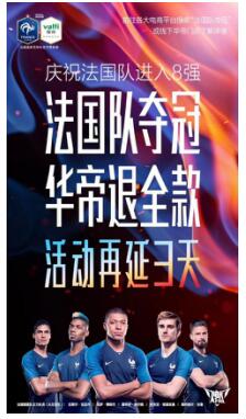 不过,比赛场更精彩的,绝对少不了各界网友全程关注的华帝。众所周知,华帝的“法国队夺冠就退全款”营销活动是近段时间最具吸引力的全民话题,一波又一波辗转的态势,成为了无数球迷的讨论焦点,风头一时无两。