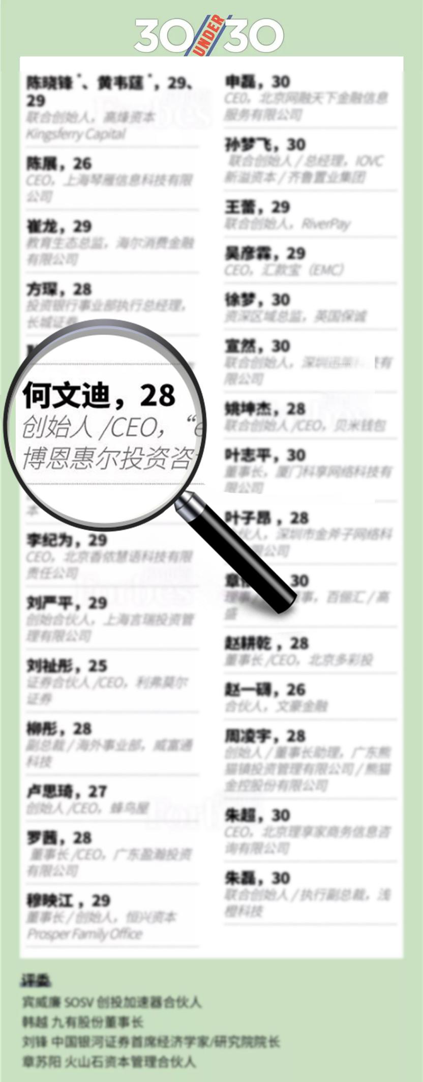 据悉,本次“2018年30位30岁以下精英”的榜单评选,邀请了69 位著名的企业家、风险投资家、艺术家、商学院院长和教授,以及业内意见领袖担任评委,历经了数月的考察,对于候选者的综合素质以及企业发展态势也进行了多维度评比。
