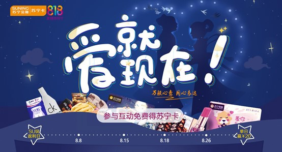除此之外,苏宁卡还甄选杜蕾斯、中国黄金、蒙牛纯甄、三只松鼠、RIO等快消巨头品牌推出定制卡面,集万般心意为爱发声:在苏宁易购百货全场满129元减30元、超市好奶满199元减60元、adidas特卖品牌日满198元减100元元、休闲零食买满199元减120元….苏宁卡大牌多重优惠,将燃放你的浪漫七夕。