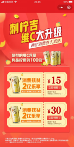 第二重礼:按完成支付顺序的第 5 位、第 10 位、第 15 位…………第 5000 位,每天共产生 1000 名幸运用户,均另外获赠刺柠吉维 C 果汁( 12 罐)一箱。 刺柠吉复合果汁以贵州刺梨和优质柠檬搭配而成,一罐230ml刺柠吉的维C含量约等于9颗柠檬(VC含量数据来源:国家加工食品质量检测中心),口感酸酸甜甜,清清爽爽,0脂肪0防腐剂,适合全家饮用,送上健康祝福。