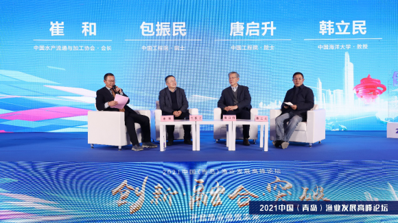 在圆桌对话环节,以“中国渔业产业发展现状与机遇”为主题,邀请中国工程院院士唐启升、中国工程院院士包振民、中国水产流通与加工协会会长崔和、中国海洋大学教授韩立民进行了探讨。与会嘉宾围绕“十四五”时期中国渔业产业将面临的机遇与挑战、发展增长点、未来发展导向等问题展开对话交流。