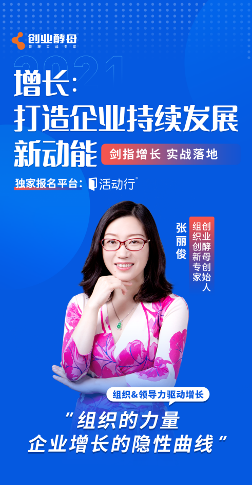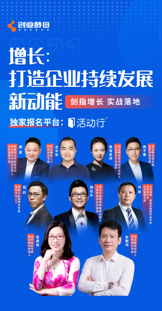 众所周知,组织是企业经营的核心要素之一。组织的本质就是人,企业管理其实就是对人性的管理。企业想要发展,必须以终为始地系统思考如何进行组织变革?如何通过组织的力量,驱动一群人的潜力?如何激活组织,刺激业务的增长?当组织能力跟不上业务发展的速度该怎么办?除了物质奖励,还能如何激励团队?如何调动员工,激发组织内部底层动力?这些都是企业增长问题上亟待解决的关键点,也是企业增长的底层问题。面对这些增长难题,创业酵母重磅推出管理实战大课——《增长:打造企业持续发展新动能》,并于2021年11月26-28日正式在杭州拉开帷幕。本次课程将围绕组织、财务、业务、流量、营销、品牌六大板块,详细讲解,直击企业痛点,一站式解决企业增长难题 。