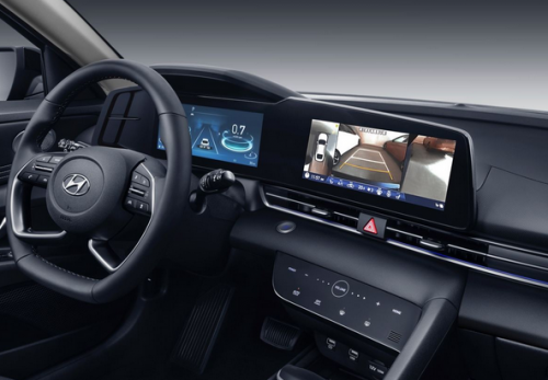 例如,它的自动泊车系统实用性极高,当停车场拥挤只剩狭窄停车位时,第七代伊兰特黑骑士限量款挂倒挡之后,会立即启动SVM360°全景影像,此时中控屏幕上出现三个画面,最左侧为俯视视角,展示出车子周围360度的障碍物情况,中间是RVM倒车影像视角,可以通过调节方向盘的角度显示驻车预测轨迹,最右侧是右侧盲区的实时影像,清晰显示操作余量和右侧车门的预留空间。