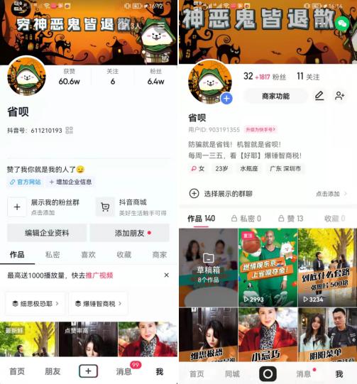 图:省呗快手、抖音号