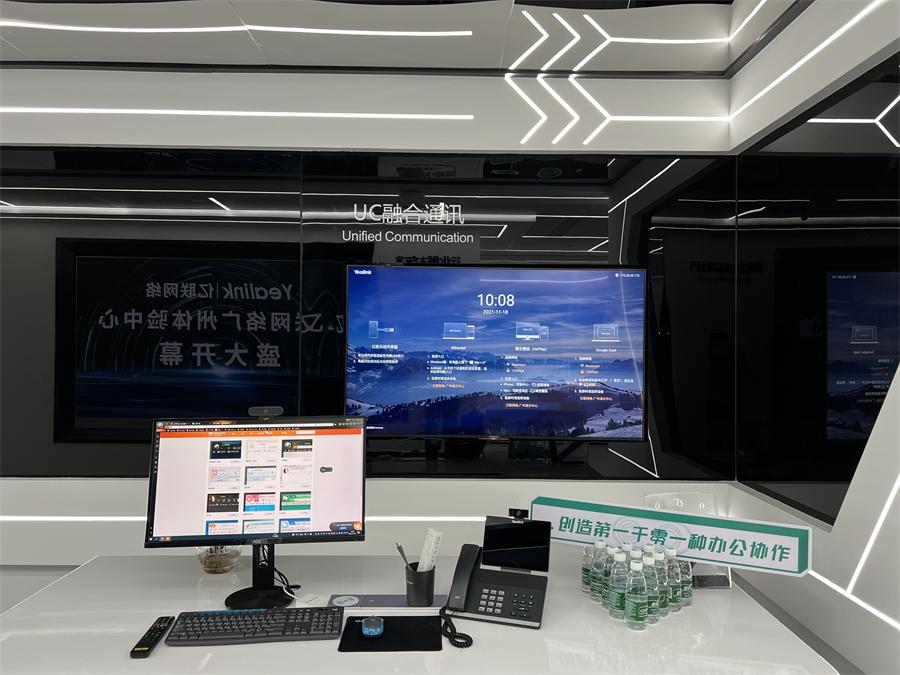 全新亮相的亿联网络广州体验中心,不仅涵盖日常产品展示功能,在与客户的互动体验上也做了全新的尝试。除了传统的全系产品陈列,还创新打造了集亿联网络高端技术于一体的三屏视真方案。