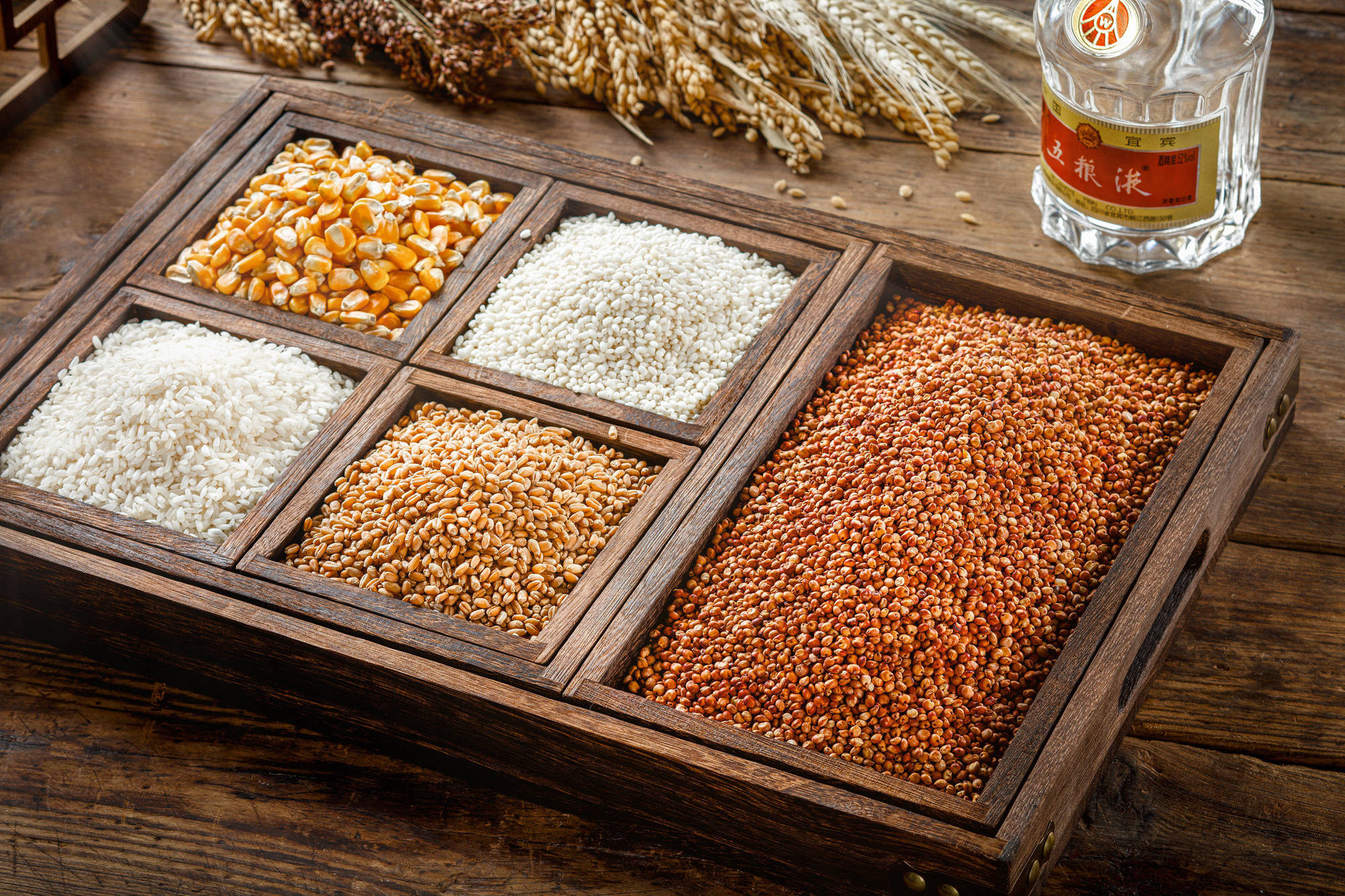 在世界酿酒史上,大部分酒都采取单一粮食发酵。小麦酿出了俄罗斯伏特加、苏格兰威士忌、德国黑啤,大米酿出了日本清酒,玉米酿出了流行美洲的奇恰酒。而五粮液与众不同,在酿造之初,就考虑到了五种粮食不同的“性格”,希望通过不同粮食的配比,让酒味更全面,既有各种粮食的芬芳,又能融合成全面的酒香。