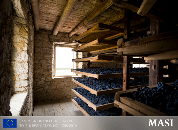 葡萄风干工艺(Appassimento)是对葡萄进行部分自然脱水的过程,以在葡萄酒中获得更加浓郁的颜色、香气和风味。健康的葡萄在收获后,被放在专门的风干室(Fruttai)的竹架上度过约100多天的漫漫寒冬,在此期间,它们的重量减少30-40%。