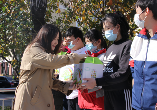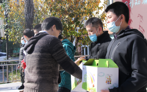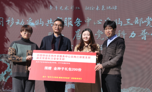 晨光科力普采购经理李月及上海晨光公益基金会副秘书长林益仲代表晨光文具和中国移动采购共享服务中心采购三部党支部向“牵手艺术彩虹 献给未来地球”慈善教育项目合作的特殊学校捐赠晨光文具金种子礼包200份。