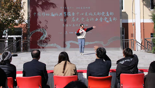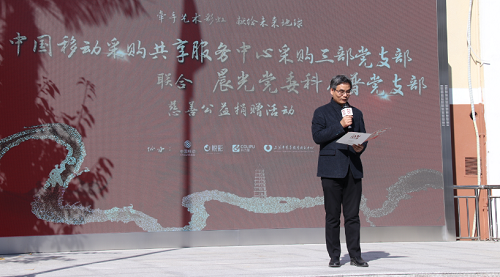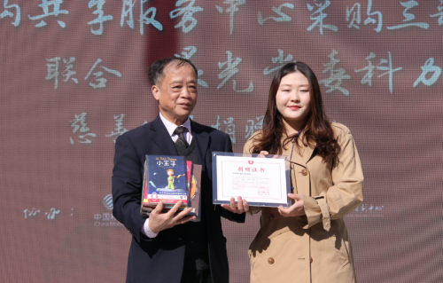 在乐声中,晨光科力普采购经理李月代表中国移动采购共享服务中心采购三部党支部向上海市慈善教育培训中心“牵手艺术彩虹 献给未来地球”项目捐赠图书150册。