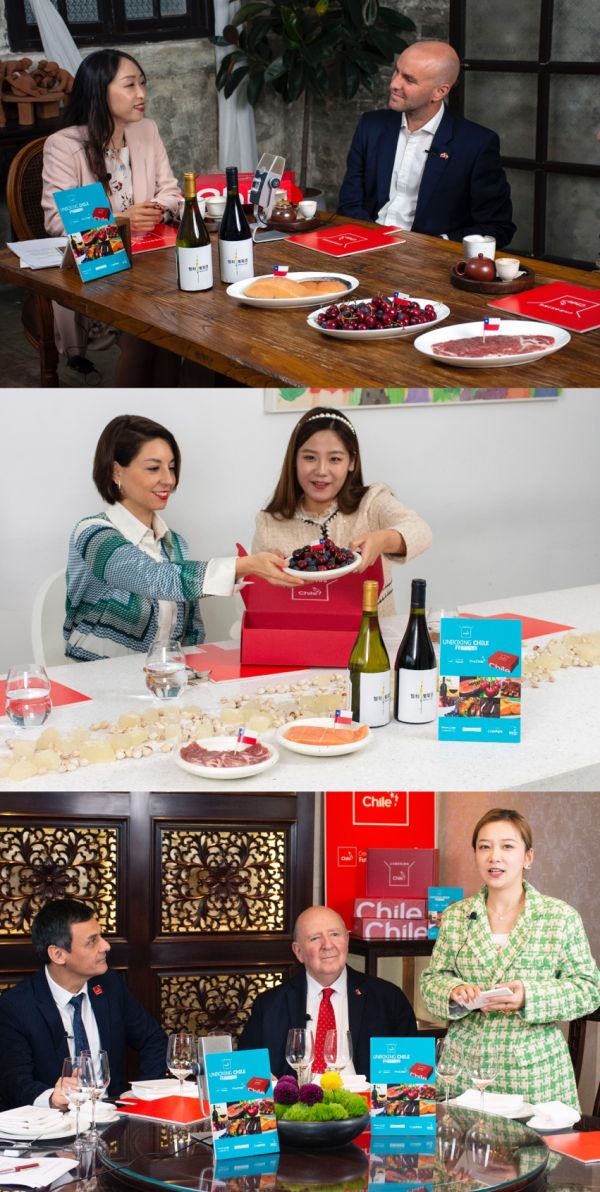 开启一份智利美味盲盒,收获一段充满智利风味的舌尖旅程。11月22日-12月1日,智利驻华商务处分别在广州、北京和上海发起了三场“开箱智利”美味直播。智利驻华大使路易斯·施密特阁下,智利驻广州商务领事爱德华先生,智利驻华使馆商务领事娜塔女士,以及智利驻沪商务领事武德先生,分别在三个城市和主播一起畅谈两国生活和不同的饮食文化。并在当地极富特色的餐厅中,用智利三种品质食材——三文鱼,猪肉和车厘子,结合城市特色,制作特别的菜品,搭配以智利葡萄酒,演绎出令人难忘的万千滋味,让人隔着屏幕就能感受到食物的诱人喷香。