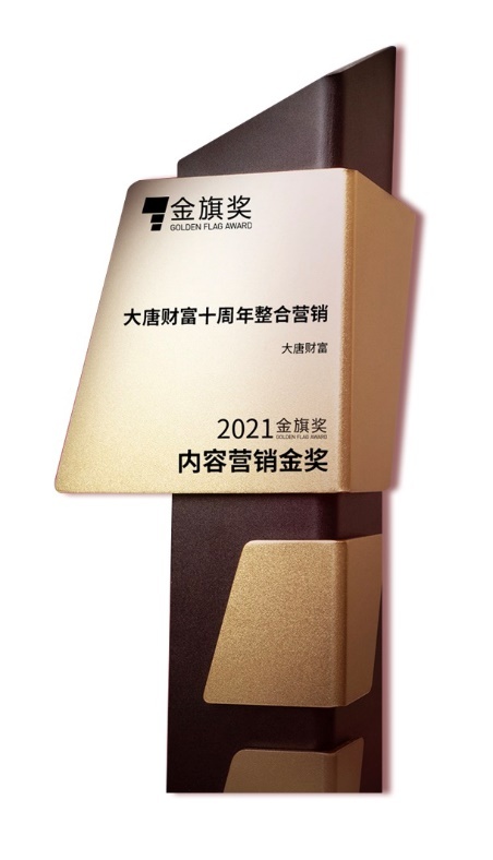 近日,最具专业性和认可度的品牌影响力大奖之一的金旗奖揭晓。大唐财富打造的“十周年整合营销”项目,凭借专业的水准和超高的社会影响力,在一众品牌营销案例中脱颖而出,最终荣获“内容营销金奖”,并入选《金旗奖案例集》。