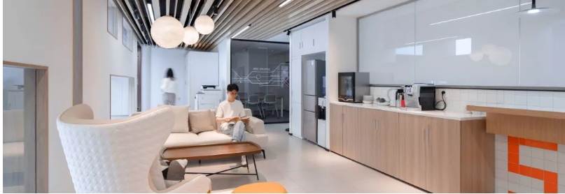 开放式的交谈区萦绕中庭,让人与人之间的连接变得随时随地。忙碌的创客可以在这里享受片刻宁静,也可以与行业知己、工作伙伴畅谈一番。