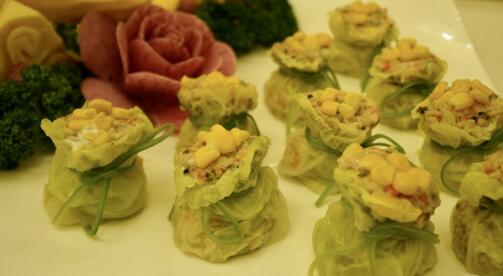 参加活动的厨师们,以胶州大白菜为主要食材,秉持匠心与创意,打造出一道道精致美食,引爆了比赛现场。美食盛宴异彩纷呈,各位选手各显神通,一道道菜品让现场群众看得垂涎欲滴。本次美食大赛不仅有金汤胶白翡凤尾虾、翠白玉鲜虾卷、胶东海胆墨鱼胶白包等传承鲁菜风味的创意菜;还有线上比赛中来自八大菜系以胶白为主题的滇味凤尾白菜、西湖翠白菜、掌门双味花开富贵、佛手玉白菜等特色美食;而来自胶东民间的胶河源纯白菜水饺、海捕大虾炒白菜等地到家常菜承载着乡情缠绕着乡愁,代表着胶州人民对于胶州大白菜的深情厚意。