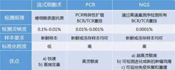 实际上,MRD检测并非新概念,过去在白血病等血液瘤的治疗中,基于流式细胞术和PCR技术的检测产品已经广泛应用。