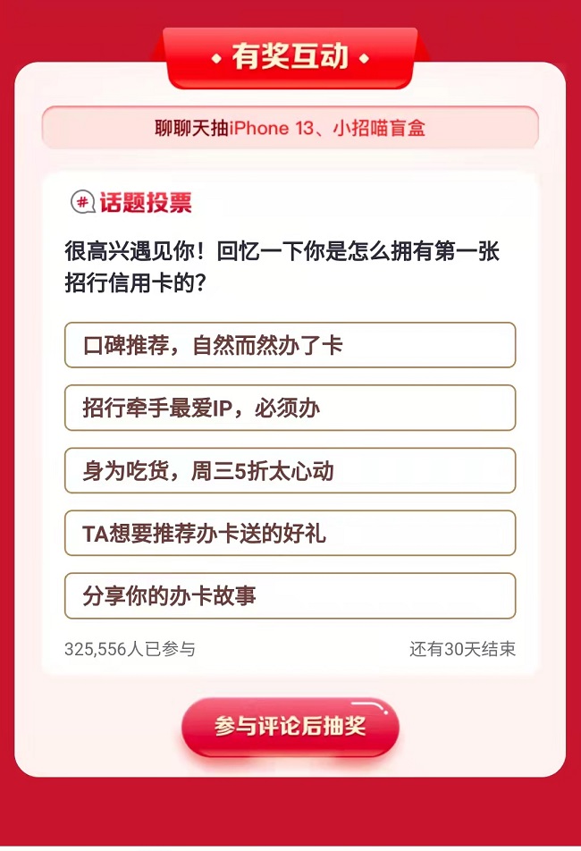今年的“10元风暴”活动面向招行个人信用卡持卡客户,持续时间至2022年1月10日,不同于往年花式集喵、组队竞拍 PK,今年新玩法更简单,参与门槛也更低,且怎么玩都有礼。