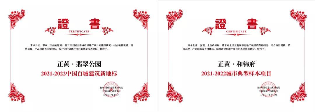 12月2日,由中指信息技术研究院主办,中国房地产指数系统、中国物业服务指数系统承办的“2021中国房地产大数据年会暨2022中国房地产市场趋势报告会”在北京隆重召开。本次大会上正黄集团斩获多项殊荣,正黄·翡翠公园荣获“2021-2022中国百城建筑新地标”,正黄·和锦府荣获“2021-2022城市典型样本项目”。