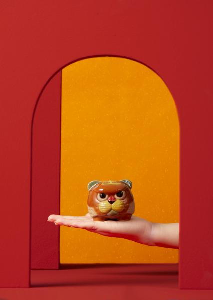 在礼盒中,最能表现“东方文化”的,当属由哲品携手中国陶瓷艺术大师封伟民,采用首批国家非物质文化遗产的石湾陶塑技艺,推出一款满载福气与萌趣的艺术摆件——福虎。不仅为整套茶具增添了虎年的气息,也能感受到这是传统工艺与现代设计的融合,从而让非遗文化更年轻化、生活化。