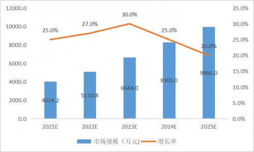 受我国数字政府建设不断推进,各地政府愈发重视财政数据对地方政府管理的重要意义,因此财政行业数据服务市场规模将呈显著高速增长趋势,预计到2023年增速达到顶峰,随后受市场饱和等因素影响,增速将逐渐下滑。计世资讯预测,财政行业数据服务市场规模将在2021年~2025年间保持20.0%以上的增速,预计到2025年,中国财政行业数据服务市场规模将达到9966万元。