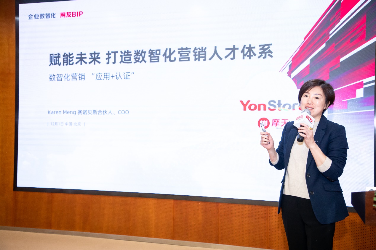 作为中国领先的营销技术与服务专家,赛诺贝斯凭借卓越的营销数字化能力与丰富的人才体系建设经验,成为用友营销数智化“应用+认证”合作伙伴。赛诺贝斯合伙人&COO孟艳冬受邀参与签约仪式,并以《赋能未来 打造数智化营销人才体系》为主题发表演讲,表示将与用友摩天平台携手,共同搭建营销数字化人才培训及能力测评体系,以“应用+认证”的全新服务模式,助力企业高效实现数字化转型。