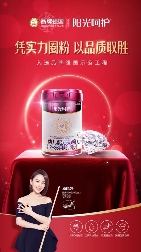 2020年,阳光呵护与“九球天后”潘晓婷达成合作,潘晓婷是十次世界冠军保持者、是中国台球界第一位获得世界锦标赛冠军的选手,拥有良好的知名度和美誉度,作为世界冠军,那种努力向前,稳扎稳打的精神,正是阳光呵护始终如一坚持品牌发展的初衷。同样的阳光呵护也立足深耕与母婴行业,围绕健康循环生态链,做婴童新经济的引领者。成立至今,阳光呵护的服务区域已扩散至全国各地,好评如潮,赢得了数百万消费者的支持。