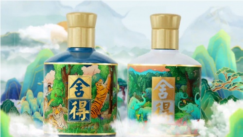 从设计上来看,这支新品以天空蓝为底色,细腻笔触生动勾勒,山川、丛林、飞鸟、大象栩栩如生,跃然于盒上。内有两瓶白酒,瓶身以郁郁葱葱的自然景观呈现,分别绘以大象与老虎画面,礼盒整体清新典雅,富含“虎年春风起,舍得万象新”的美好寓意,在限量发售与瓶身上的专属收藏编码,让产品极富收藏价值。