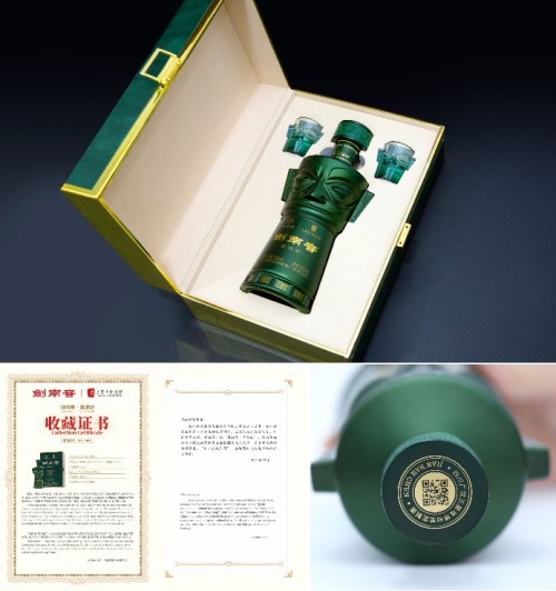 为纪念现代考古学诞生100周年。剑南春携手三星堆博物馆,于双12推出的限量收藏酒“剑南春·青铜纪”也收获了大量人气。该品设计灵感源自三星堆青铜面具,同时礼盒中还包括两个渐变色面具酒杯和一份收藏证书。三星堆古蜀文明璀璨神秘,剑南春源远流长千年飘香。该品上线剑南春天猫官方旗舰店后,在很短的时间内即售罄,年度爆款名副其实。