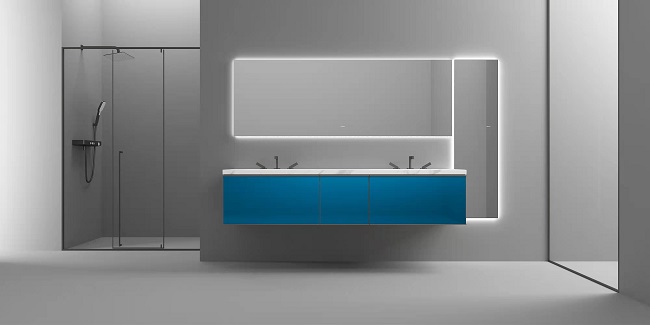 FAENZA法恩莎 Figos Series菲戈斯系列浴室柜创造性地运用蓝色镀膜玻璃材质,将柜体材料的颜色和反射的动态进行组合,根据光线照射和观察者所处的位置,呈现不同的渐变色彩反射,搭配感应带灯抽屉、挥手感应智能镜、全身镜,让Figos Series同时拥有独具艺术感的色彩与实用属性,诠释着艺术与生活交相辉映的奇妙灵感。