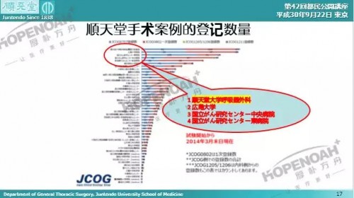 ▲顺天堂医院肺癌手术例数排名前列