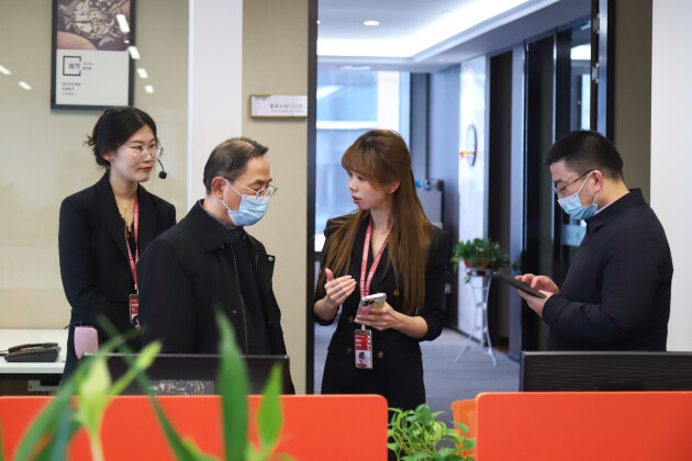 国家商务部领导首先在朱女士的引导下,参观了花娃网的办公室环境,了解集团文化。花娃现代化的办公环境、不断拼搏的企业文化,“党建让互联网发展更美好”的发展理念,受到了国家商务部领导们的一致认同。