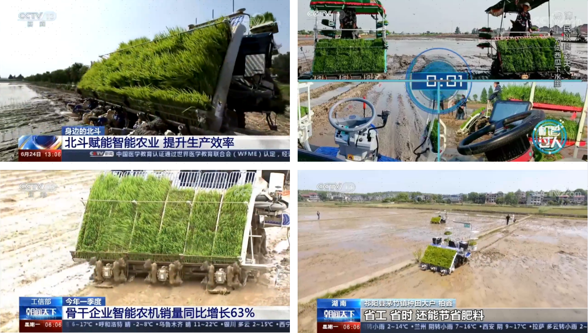丰疆智能插秧机曾登上央视《焦点访谈》播出的《田间玩转高科技》栏目中,节目中介绍了无人驾驶高速插秧机高效率、走得直、插得稳等优势,帮助农户解决了插秧季雇人难、雇人贵的问题。