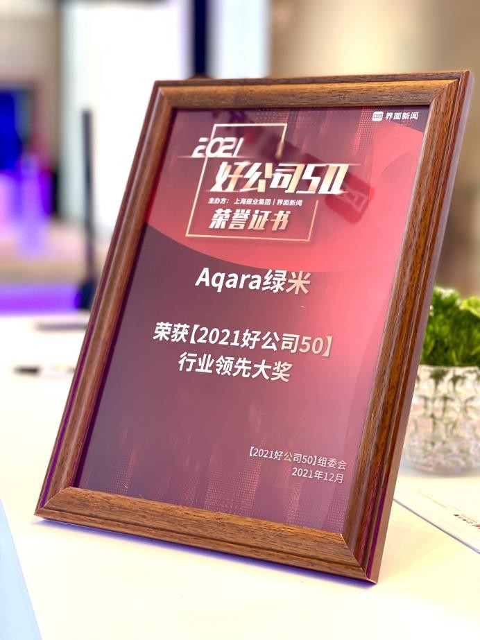 2021的即将年收官之际,“2021年中国好公司”、“2021年中国好品牌”、“ESG先锋60”等九大奖项在界面财经年会现场一一揭晓。Aqara凭借着12年来在物联网领域独特的产品力、创新力、影响力以及优势成绩,在众多的科技创新企业中脱颖而出,登榜界面财经「2021好公司50」榜单,并获得“行业领先大奖”,这是近日Aqara在获得猎云网“2021年度AIoT领域最具影响力创新企业Top10”,36氪“WISE新经济之王-硬核企业”奖项,铅笔道“科技独角兽”后,再度获得权威机构的又一嘉许。