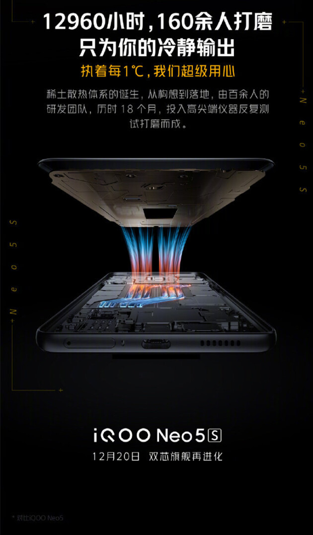 据了解,稀土散热体系从提出方案到落地,共160余人参与,历时18个月才打磨完成,iQOO Neo5S作为首发机型,或许会在性能释放方面带来更好的表现。