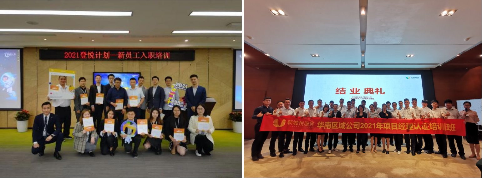 新城悦服务始终高度重视人才供应链的完善及内部造血能力的提升,通过构建雇主品牌不断吸纳优秀毕业生及行业优质人才,依托专业赋能和线下“师带徒”机制,打造人才与新城悦的共同成长体系,让每位员工从入职、胜任和晋升发展都能得到关注和培养,助力员工不断实现和提升自身价值。