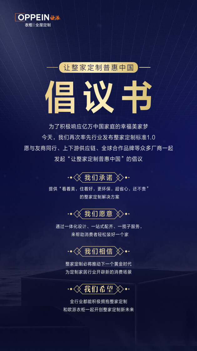 为此,欧派衣柜推出整家定制1.0的产业标准,向全球首发。