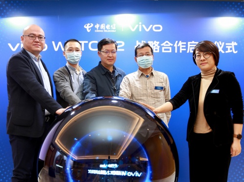 中国电信全渠道运营中心终端与权益室陈立经理、天翼电信终端有限公司市场营销部总经理助理李宜强、首席市场经理凌东,vivo运营商总经理付松岩、vivo智能终端市场中心总经理李嘉莹等双方领导及嘉宾亮相此次启动仪式。
