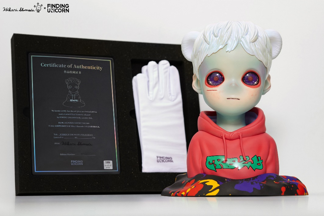 近日,日本当代艺术家下田光与FINDING UNICORN寻找独角兽合作推出的重磅精品——「HIDDEN IN THE NIGHT (POLAR BEAR)」火热发售中。本次作品全球限量发行601体,灵感来源于日本当代艺术家下田光(Hikari Shimoda)2020年的系列画作。眼部采用多层结构与复杂工艺,目的是为了能让眼睛更深邃、透亮。底部采用的泼墨的办法,让色块随意喷溅在底座的背景上,呈现出一种流动、倾倒的感觉。