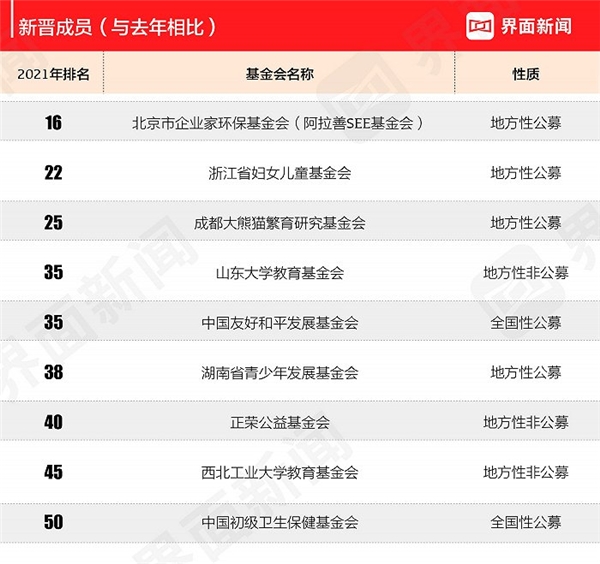 中国红十字基金会、中国光华科技基金会、中国社会福利基金会、中华社会救助基金会并列第一。