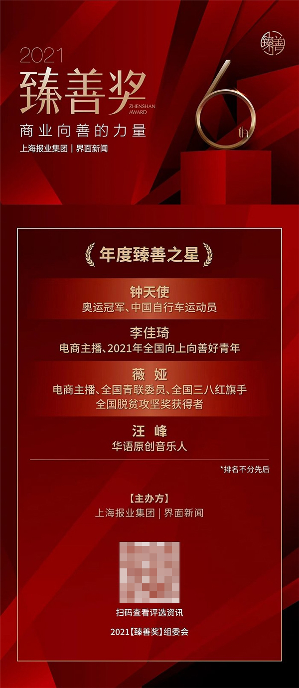 由上海报业集团 | 界面新闻发起的2021【臻善奖】终榜于12月16日在沪正式揭晓。徐虹、陈琳、王志云、陈平森、陈伟利5位臻善领袖上榜,伊利、腾讯、特步集团、完美中国等30家知名企业获得年度臻善企业大奖。