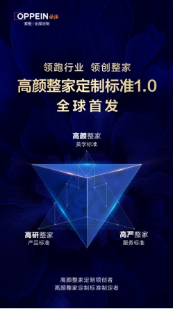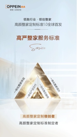 欧派衣柜再显行业龙头品牌担当,开行业先河,领衔首发“高颜整家定制标准1.0”。 欧派衣柜高颜整家定制标准1.0基于消费者立场,经过一年多的试点、实践,形成了一整套完整体系:核心是“三高”,即高颜(高颜整家美学标准)、高研(高研整家产品标准)、高严(高严整家服务标准),从美学、产品、服务全方位定义了整家定制标准,为整家定制的生态发展树立了行业标杆。
