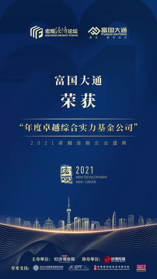 日前,由经济观察报主办、上海信托战略合作的“2021年度观察家金融峰会——暨中国卓越品牌力企业盛典”在上海成功举办。会上,富国大通凭借近年在财富管理行业的成就,荣膺”2021年度卓越综合实力基金公司”奖项。