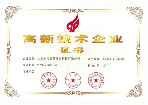 根据国家《高新技术企业认定管理办法》和《高新技术企业认定管理工作指引》的相关规定,北京金博智慧健康科技有限公司(以下简称“金博智慧”)被认定为高新技术企业。