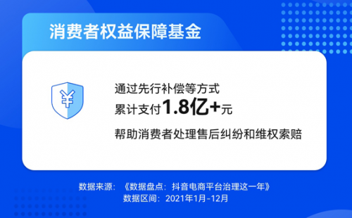 12月23日,抖音电商发布《平台治理这一年》数据报告(以下简称"报告"),全面盘点了2021年度该平台的治理工作进展及成果。报告还对平台在“消费者权益保障”方面所做出的努力进行了总结。